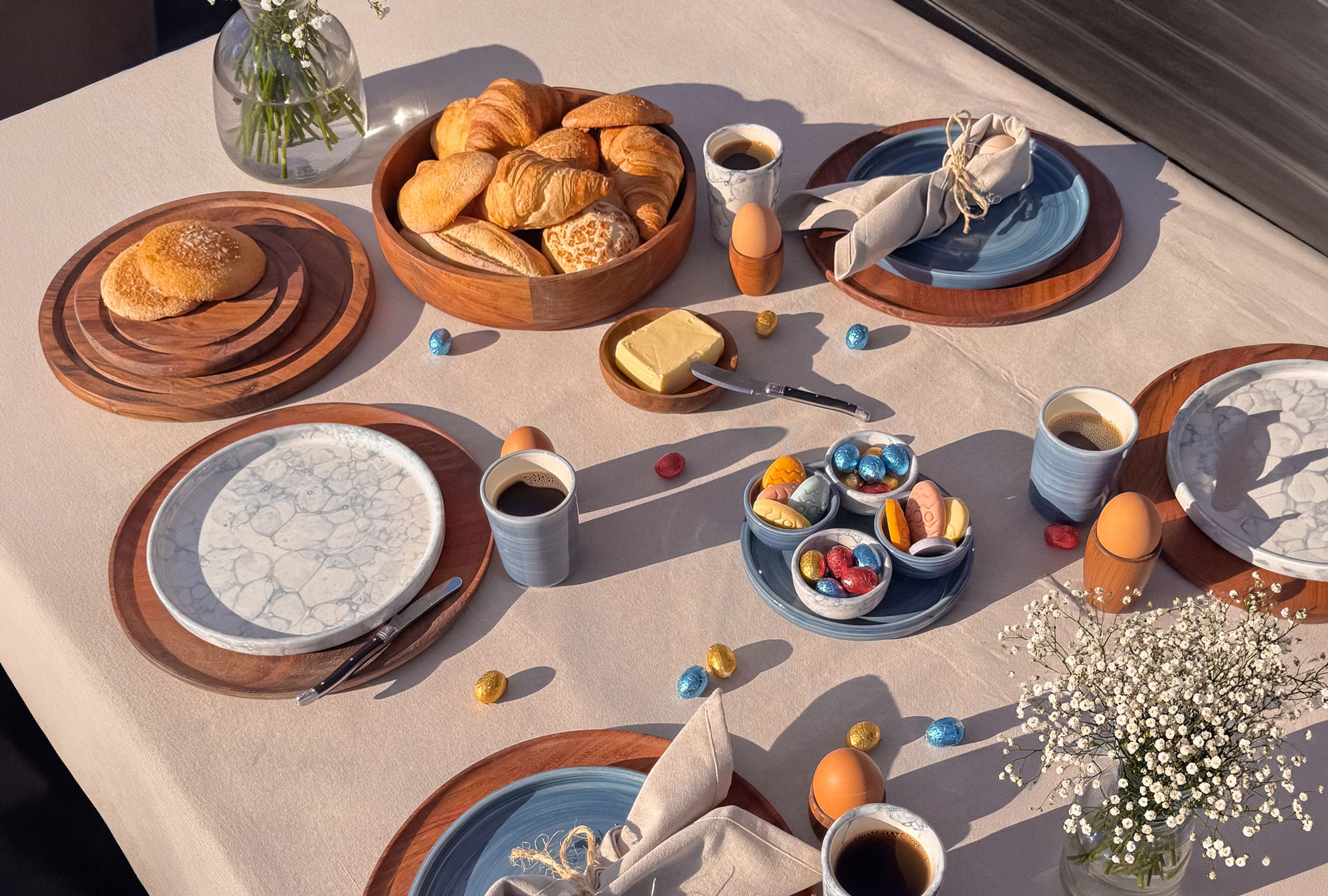 Verse broodjes, croissants en zachte boter mogen natuurlijk niet ontbreken tijdens een Paasbrunch. Met de botermesjes van Moments smeer je eenvoudig je broodjes, terwijl ze tegelijkertijd een stijlvol detail vormen op tafel.